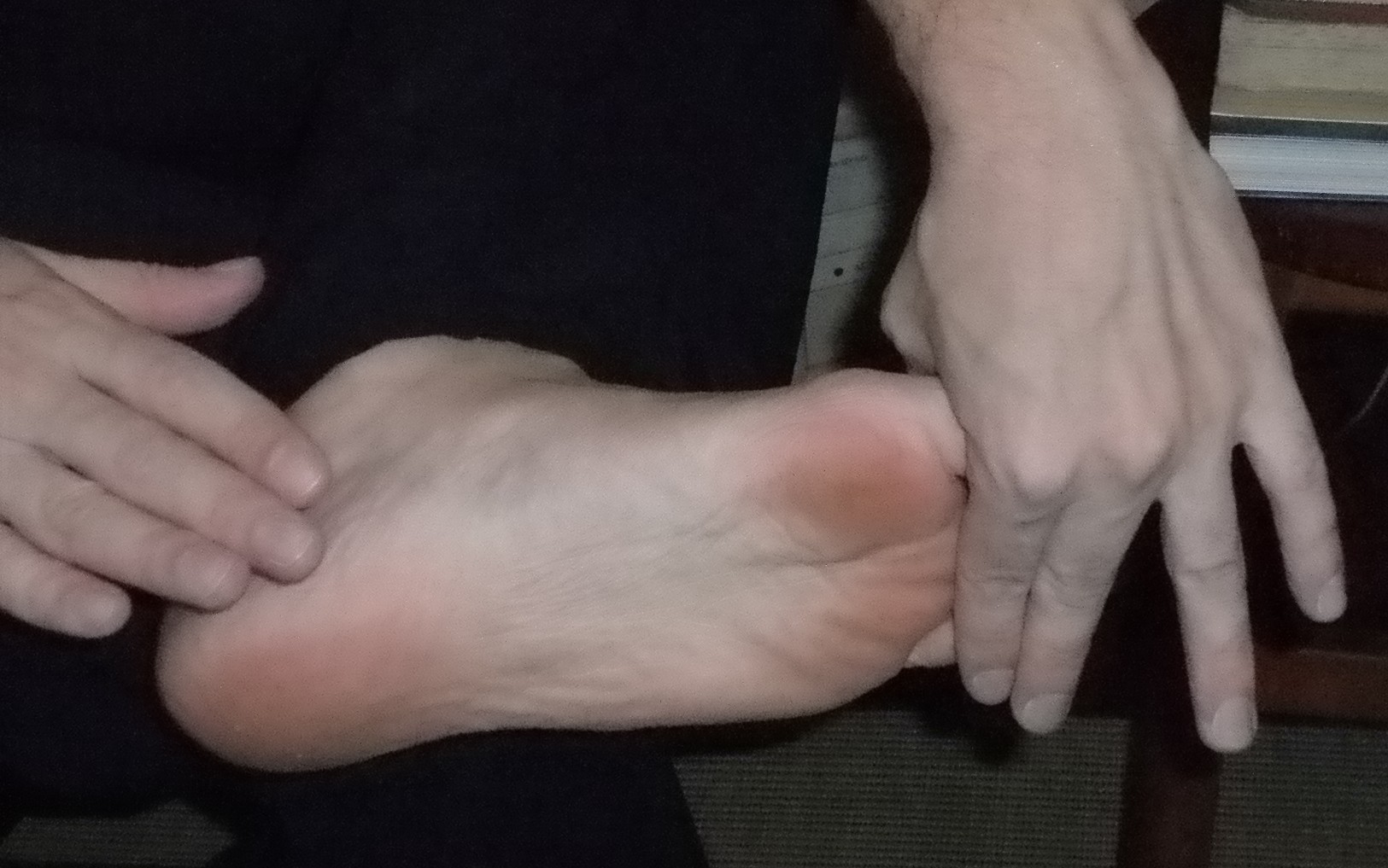 Você pode ver que a fáscia plantar fica tensionada, e pode perceber isso com os dedos (fig.4).